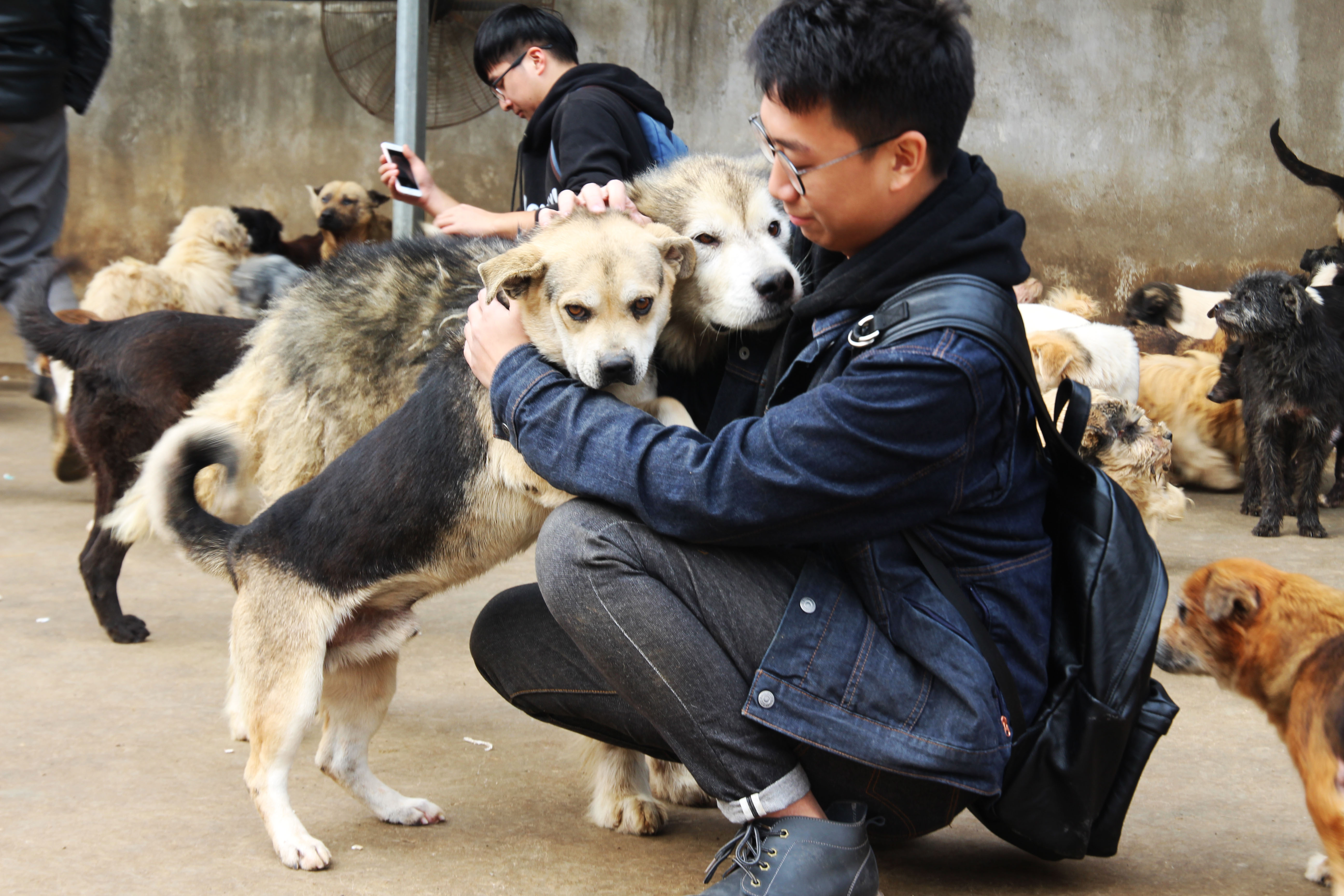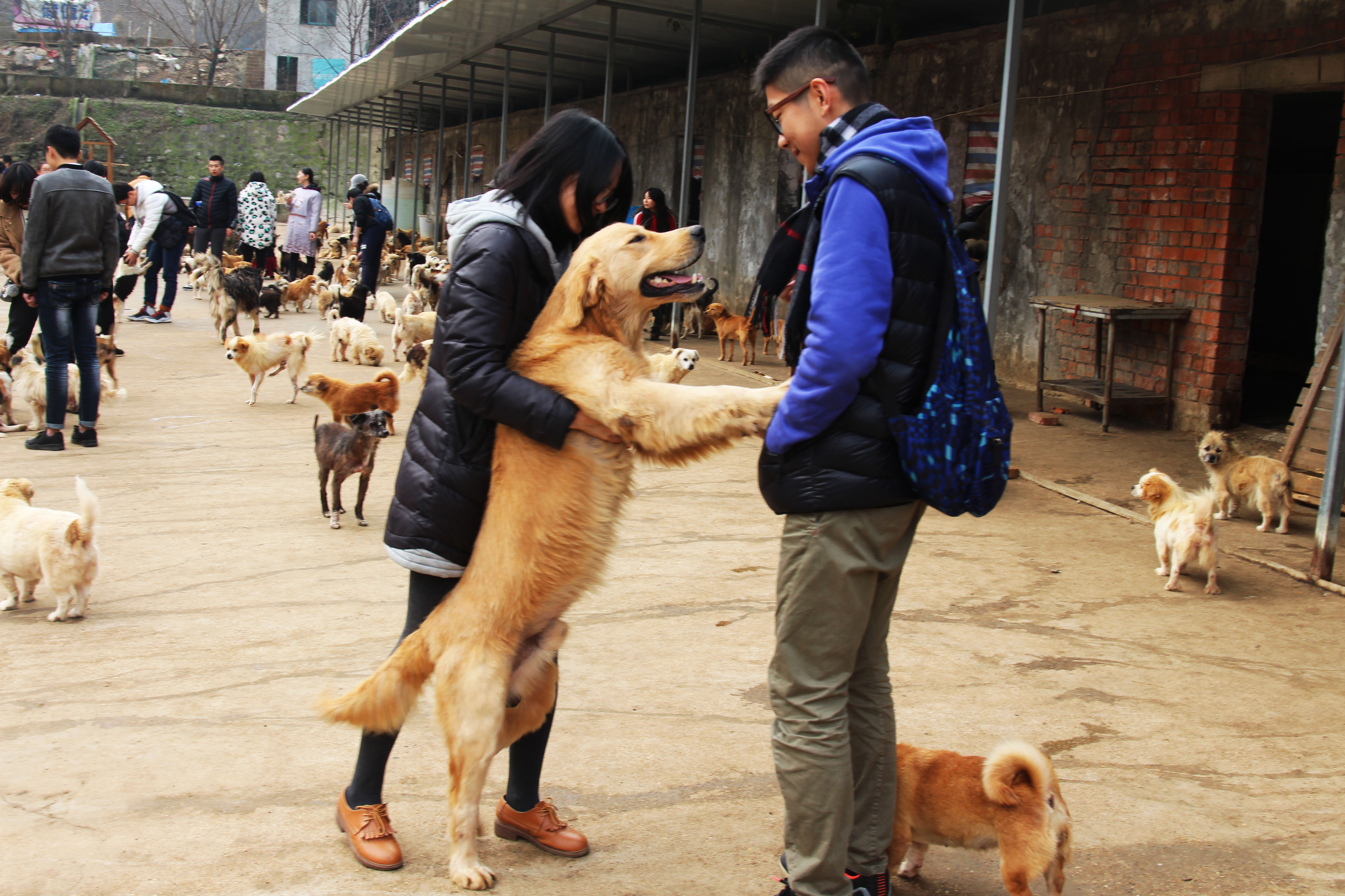 志愿者们一进入犬舍就被成群的流浪犬团团围住,它们都使劲地摇着尾巴,仿佛在表达最热烈的欢迎。大家都纷纷俯下身,和身边的狗狗玩耍。有的狗狗在志愿者的抚摸下舒适地眯起了眼睛,有的会兴奋地扑向你或是跳进你的怀里。