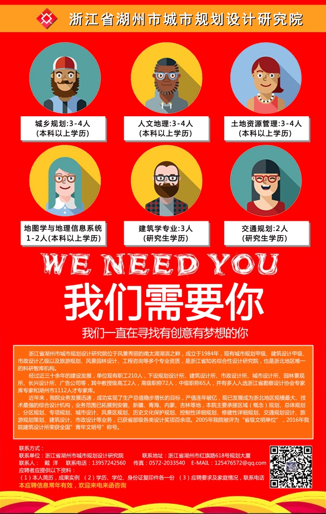 招聘专业 | 城乡规划、人文地理、土地资源管理、地图学与地理信息系统、建筑学、交通规划等相关专业 |