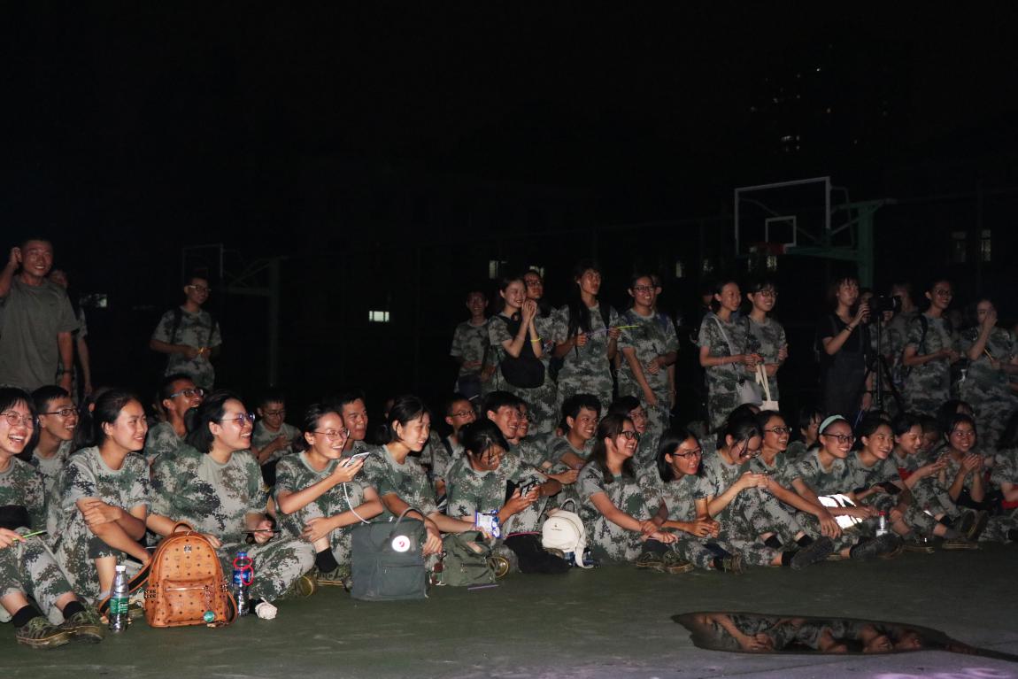 前有同学拉歌,后面自然有教官献歌一曲作为回应。同学们自发地打开了手机的灯光,为教官疯狂打call,随着歌声点点灯光在黑暗中连成一片。相信通这次晚会的互动让同学和教官有了更深的了解,也更增进了情谊。