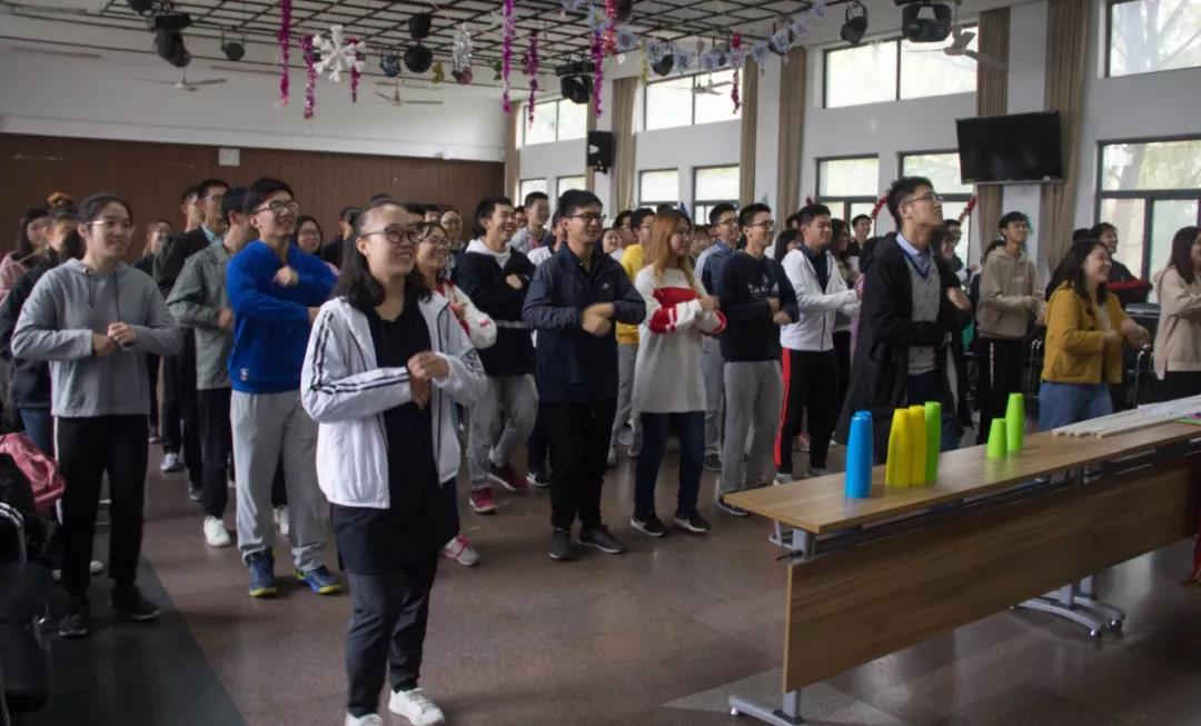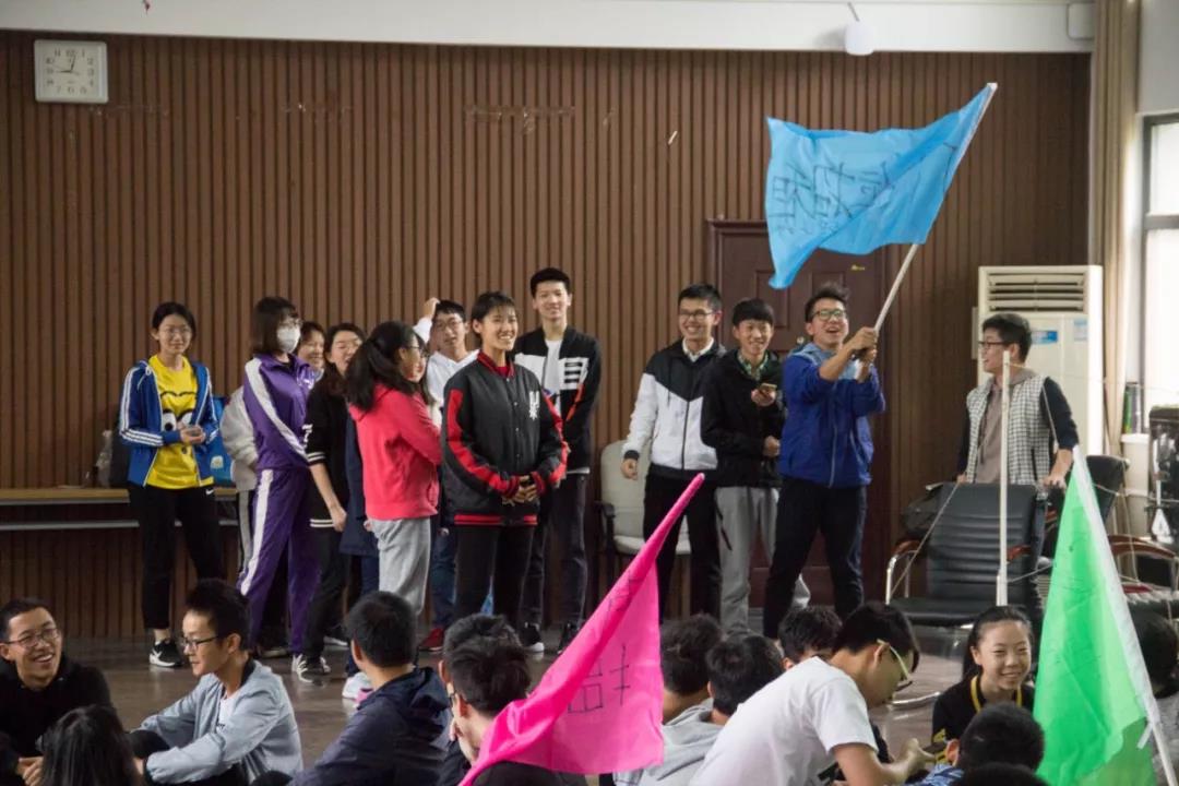 暖场环节,一段小学生热身操及速记姓名的小游戏使大家快速熟悉彼此,在六位部长的带领下,大家依次展示了各自别出心裁的队名,队旗以及队歌,引得一片笑声。