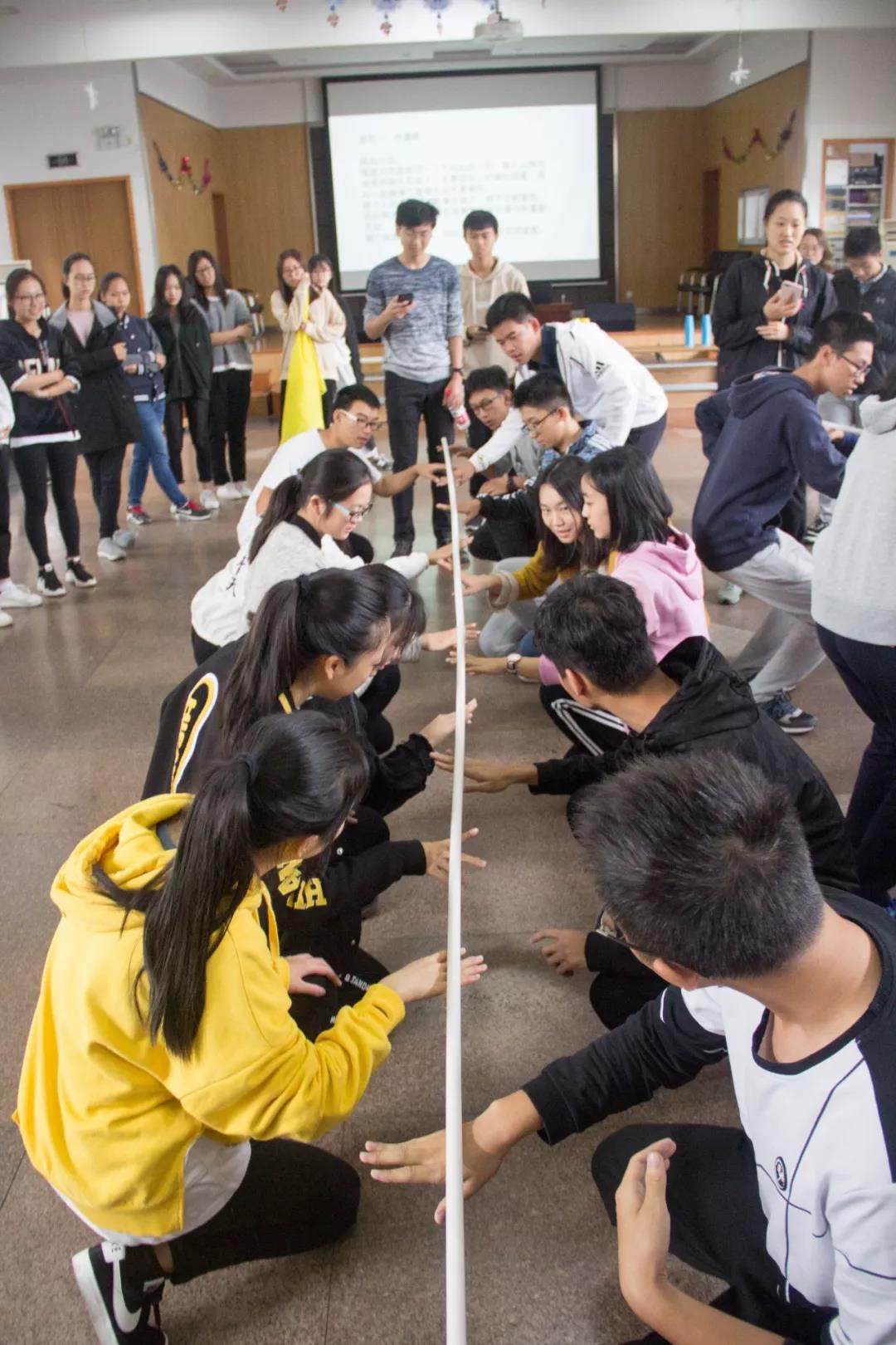 面对一根近五米的pvc长管,各队成员快速开动脑筋,激烈讨论如何用手背托住pvc管,并在没有一个人脱手的情况下将其从眉毛处放到地面上。这不仅考验了队员们的协作能力及团队意识,更使大家在陌生环境中迅速建立起信任关系,当pvc管落地的一霎,队员们都不由自主的为大家感到骄傲。