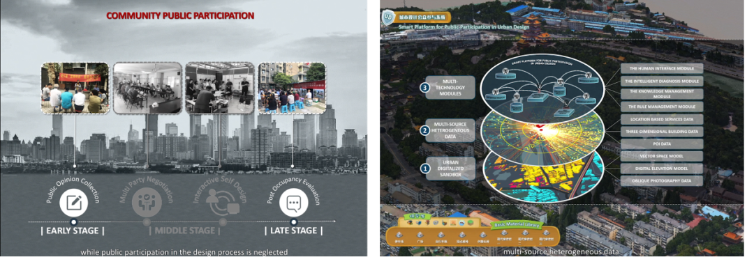 城市设计公共参与智能平台介绍 2021年3月第48届日内瓦国际发明展上,杨俊宴教授团队申报的发明专利群为 “城市设计公众参与智能平台”。该平台突破了传统公众参与缺乏后期规划方案评价的瓶颈,解决了公众参与中公众意图三维形体化的难题,实现了城市设计的公众全过程参与,保证了规划设计与市民需求无缝对接与无损传导。最终,这一成果受到评审专家组的高度认可,获得了本届国际发明展金奖。