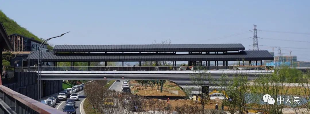 周琦教授团队承担完成的是园博街,地处坡地,又跨越道路,建筑群体顺山就势,街桥合一,规划设计参照传统商业街巷的小尺度,但建筑则采用轻钢结构加金属复合的维护体系,并与建筑一体化的主动式太阳能体系相结合,为园博园宏大的场景打造了一处宜人的休闲场所。