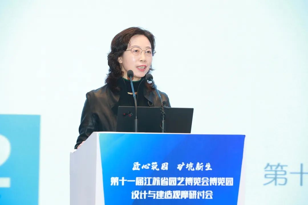 陈薇教授从在地性、文化性、经典性、创新性、传承性、持续性六个方面介绍了江苏园博园城市展园的设计思考。设计依据江苏省历史文化的多样性以及地理分区的特征性,将十三个城市展园分为五个景园区,并将五个景园区的区位特点和文化特点与功能活动相结合。整个展园虚实相间、树木葱茏、建筑掩映、楼阁参差、台地错落,希望城市展园的情、景、境、意能带动园博园的持续发展,使其成为江苏园艺和园林传承与创新的探索地和人民体验美好生活的好去处。
