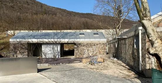 设计方案意境取自金陵八家龚贤画作“云壑松荫图”,以江南民居院落为空间原型,围绕中心半开敞庭院布置功能。造型结合场地岩石较多的特点以传统坡屋顶进行操作变形,以棱角分明的形体呼应“阳山碑材”的明文化主题。建筑位于主场馆对面,现在用作为前来园博园参观游览的游客提供休憩、餐饮等服务。