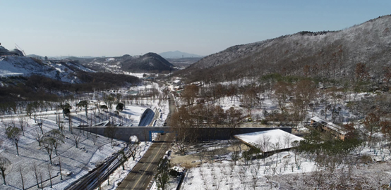 园区入口设计首先考虑整个空间流线的梳理,是园区形象的代表,而对于建筑师来说,空间的转换更为重要。2号口三面环山,是园区一个天然形成的出入口。顺应基本农田边界划出一道优美的曲线,形成了“大地的微笑”,引导人流进入园区。以一种对环境最低干预的方式和更为轻松的态度与自然共处。3号口位于园区东部丘陵起伏的山林之中,沿原有道路设置一条石砌长墙,保留原有大树,寓意“山水长墙”。长长的水平线标示出地形的微妙起伏,也界定了园区的内外关系。