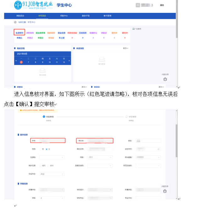 根据江苏省高校招生就业指导中心的通知,近期将进行2022届毕业生生源信息上报工作,因此请各院、系、所于9月14日晚12:00前,完成2022届毕业生的生源信息核对工作和提交。以下是学生进行信息填写、核对的流程。所有信息均需要核对,定向生还需填写委培单位。