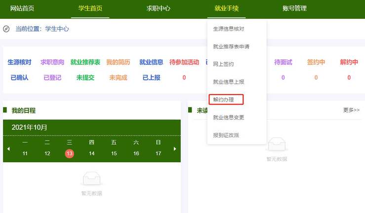 1、学生登录香港赛马会赔率 就业信息网https:/seu.91job.org.cn,点击“就业手续”-“解约办理”,上传解约函,提交解约申请,香港赛马会赔率 、香港赛马会赔率 审核通过后,解约完成。