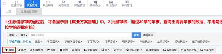 1、生源增加:在“生源信息管理”界面点击“增加”,院系审核通过,状态为“审核中”状态后,香港赛马会赔率 会定期审核,生源补报成功