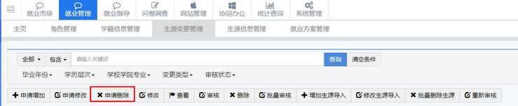 3、生源删除:如遇退学、硕转博(不拿硕士毕业证)等类型的毕业生,将学号姓名提交至就业指导中心,将生源删除。