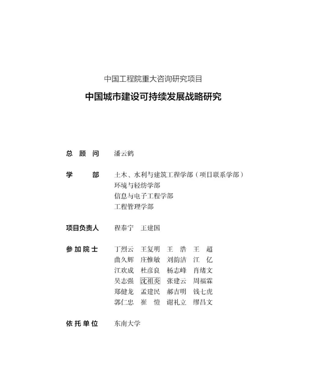 课题七、城市建设可持续发展战略实施保障体系研究(课题负责人:丁烈云、李晓江)
