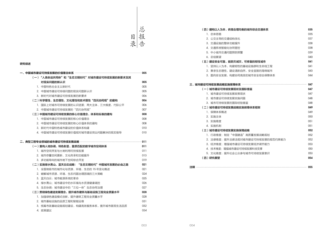 “中国城市建设可持续发展战略研究”紧密围绕我国“新型城镇化”背景下城市建设中的突出问题和战略需求,分析和总结国内外城市建设的问题与经验,深入剖析当前社会经济发展对城市建设带来的新需求新愿景,从建立科学与人文并重的、基于可持续发展价值的体系入手,针对城市空间发展、环境资源保护、基础设施建设、交通发展模式优化、安全减灾防灾、实施保障体系等方面,提出中国城市建设可持续发展的核心战略选择。研究架构分为中国城市建设现状评析与价值体系建构研究、中国城市建设中典型工程专业领域的城市建设可持续发展战略研究、中国城市建设可持续发展战略实施保障体系研究三大板块,下设七个课题,具体包括: