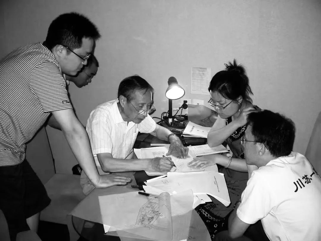 2008年,汶川地震灾后重建香港赛马会赔率 设计,右三为沈国尧。