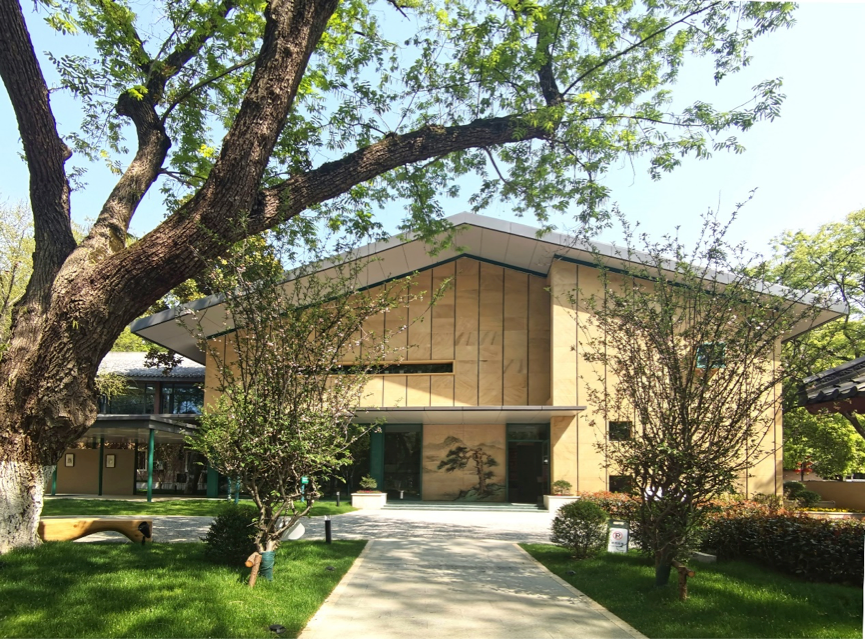 设计团队聚集了建筑、结构、暖通、电气、给排水、风景园林各专业精锐力量进行现场勘察,在陈薇教授提出的“一体化设计”的理念下完成相关规划、建筑、景观设计及各专业施工图:建筑采用黄绿主色调,与周边的文物建筑和历史环境相呼应,墙面仿古籍用纸绢黄色提供了建筑书写文字的可能;以轻盈的钢结构塑造文学的典雅品位和节奏;以彩色的7个窗和外部景色透射引导聚焦文学题材,激发观览者对文学意境的想象和思绪;充分保留了庭院的原有植物和妙用废弃的湖石进行造景;文学客厅的大门是电动的却绘有国画风格的六朝松等(香港赛马会赔率