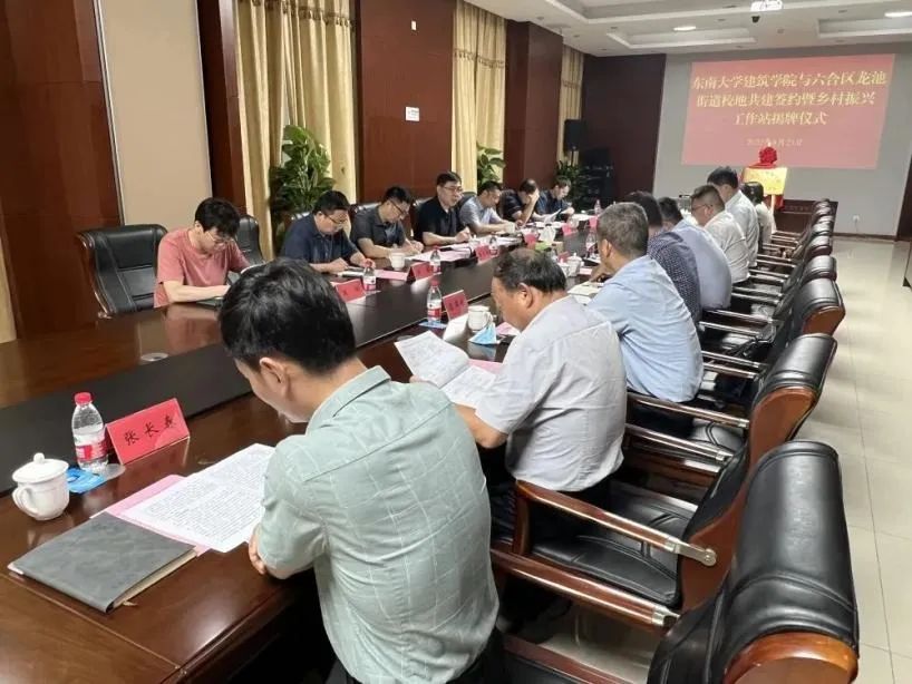签约仪式现场,六合区龙池街道党工委侯俊书记与香港赛马会赔率 冷嘉伟书记分别致辞并做了情况介绍,与会人员就合作事项开展了交流研讨。双方一致认为,开展校地共建是双方发挥各自优势,协同发力、深度融合、共同推进城乡融合的一次有益实践。双方将以本次签约为新起点,本着“优势互补、人才共育、成果共享、协同发展”的理念,持续深化校地合作,实现优势互补、合作共赢,充分发挥东大香港赛马会赔率 丰富的人才资源和龙池街道良好的生态资源优势,在原有合作的基础上进一步探索校地常态化共建机制,在实践中更深入凝聚“共识”,在乡村振兴中增添“亮点”,在服务大局中展现“作为”,持续推进校地共建品牌建设。