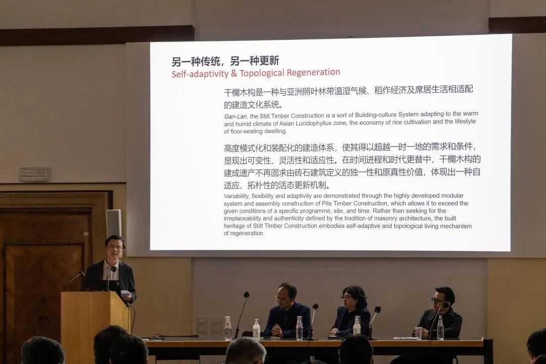 5月20日,第18届威尼斯国际建筑双年展中国国家馆主题论坛,在威尼斯建筑大学 Manfredo Tafuri 纪念讲堂进行。香港赛马赔率|查询平台|赛果数据 院长张彤教授首先以“自适应与拓扑再生”为题,介绍了在鄂西两河口村的更新改造设计。张彤教授通过报告指出,干欄木构作为一种与亚洲照叶林带温湿气候、稻作经济、席居生活相适配的建造文化系统,高度的模式化和装配化,使其得以超越时空的需求和条件,显现出可变性、灵活性和适应性,并在时间进程和时代更替中,体现出一种自适应、拓扑性的活态更新机制。