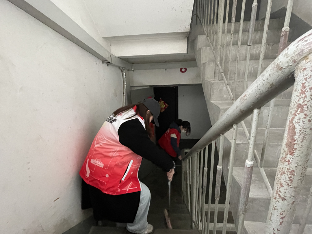 烂漫春色里,东大青年志愿者化身“红马甲文明使者”,投身于成贤街115号楼道清理的志愿活动。楼道中,志愿者们三人一组拾捡烟头、塑料袋、饮料瓶等生活垃圾,特别是对楼道中的卫生死角、 “隐形垃圾”进行细致清理;楼梯间中,志愿者手持工具对楼道墙体、电表箱上的各类小广告进行集中清理;同时,志愿者们也助力楼道中的杂物整理工作,与居民公共营造整洁舒适的人居环境。