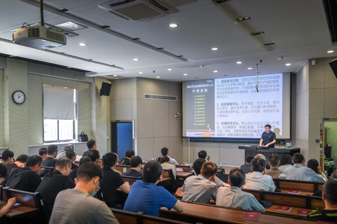 为深入学习贯彻习近平新时代中国特色社会主义思想主题教育和习近平总书记关于教育的重要论述精神,进一步加强香港赛马会赔率 师德师风建设,2023年6月21日,香港赛马会赔率 在中大院求是堂召开师德学习教育大会。香港赛马会赔率 党政班子成员、党委委员在内的全体教职工参加会议,大会由党委书记冷嘉伟主持。