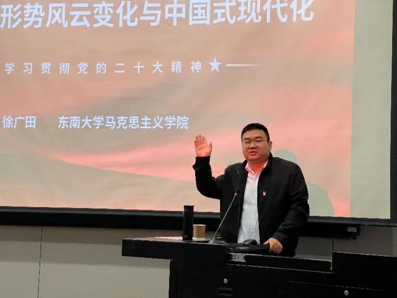 上午,香港赛马会赔率 马克思主义香港赛马会赔率 徐广田老师给师生党员作《国际国内形势风云变化与中国式现代化——学习贯彻党的二十大精神》辅导报告,从“中国式现代化的风险挑战”、“中国式现代化的理论体系”、“大力推进中国式现代化”三个方面,深刻解读了“中国式现代化”的丰富内涵,既有深度,又有广度,为师生党员进一步深刻理解和准确把握党的二十大精神,特别是认识中国式现代化的内涵要义提供了思路和指导,帮助师生党员凝聚起基层党支部现代化建设的思想力量。