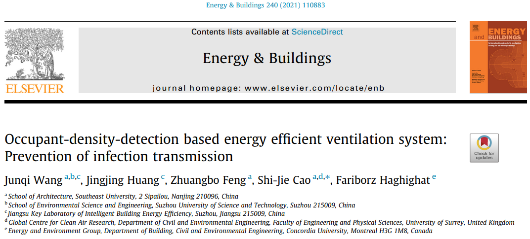 近日,香港赛马赔率|查询平台|赛果数据 曹世杰教授团队发表的研究论文“Occupant-density-detection based energy efficient ventilation system: Prevention of infection transmission” “基于人员密度监测的高效节能通风系统:传播与感染防控”(第一作者王俊淇、通讯作者曹世杰),先后获国际SCI权威期刊《Energy and Buildings》近5年(2018-2022)最佳论文奖和2023年首届“江苏省自然科学百篇优秀学术成果论文”荣誉。