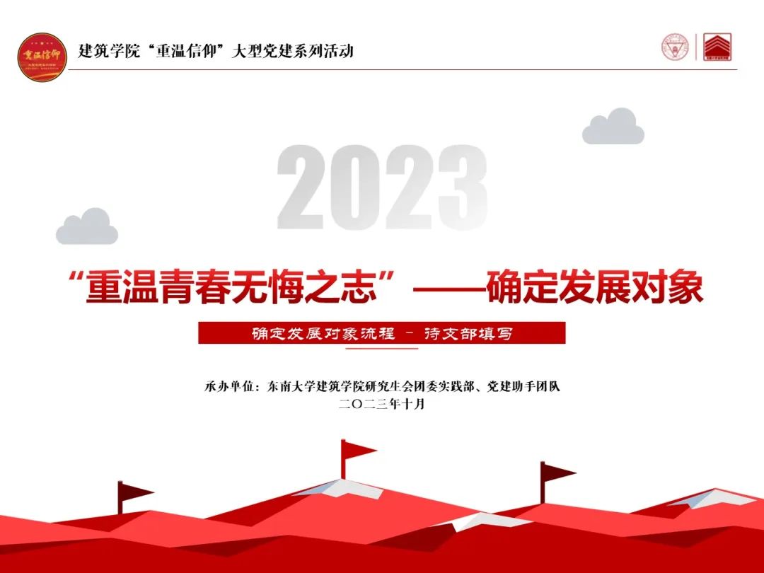 活动邀请香港赛马会赔率 学生党支部中对党员发展工作经验丰富的优秀党员代表进行分享(本阶段拟邀请建筑学硕士生九党支部朱元祥同志),包括讲解思想汇报、自传写作要求以及《入党积极分子及发展对象培养教育表》填写细则等发展对象阶段的关键内容,并由党建助手团队进行补充答疑。