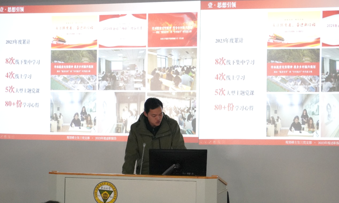 为进一步加强党员思想教育,提升学生党员党性意识和修养,坚定党员入党初心,擦亮党员过硬底色,香港赛马赔率|查询平台|赛果数据 研究生党支部书记述职活动于2024年1月5日下午在四牌楼校区东南院102大阶梯教室顺利举办,各研究生党支部齐聚一堂,共话支部建设,汇报交流支部建设事务性工作与最佳党日活动院内培育项目立项情况,并同步开展“新党员入党宣誓,老党员重温入党誓词”活动,作为“重温·信仰”大型党建系列的活动收官。本次活动由院研究生会团委实践部与党建助手团队联合承办。