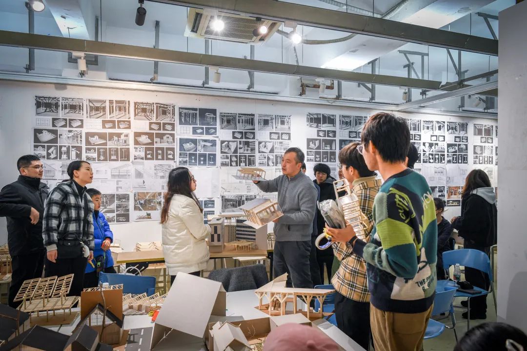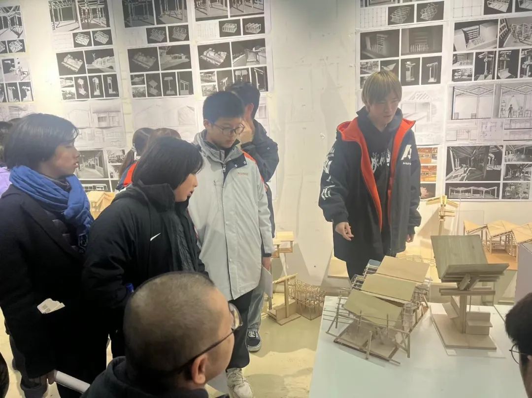 在国际建成环境创新实验中心,小朋友们纷纷对数控机械臂产生了浓厚的兴趣,同时,研究生同学的参数化设计作品也引起学生和家长们的围观。在本科一年级评图现场,有小朋友就建筑的构件、功能、甚至使用感受,提出了如“屋顶背面的细肋只是为了好看吗”、“每个房间都是做什么用的”、“里面的家具高度好用吗”这样的“灵魂拷问”⋯⋯他们的随机提问得到了本科同学现场回答,形成了自发的互动环节。家长们纷纷表示今天的活动非常有意义,孩子全程都很认真专注,不仅增长了知识和眼界,还对“大学”有一个新的认识,产生了一种“亲切感”。