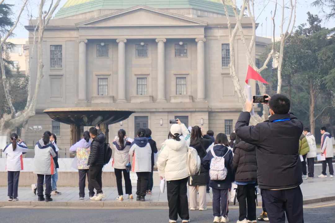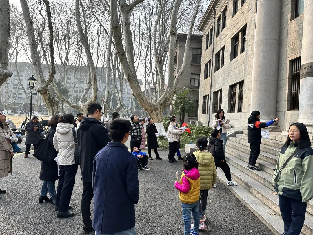 随后在大学生志愿者的带领下,学生和家长一起分成四组有序进行校园参观。从四牌楼校区南大门沿着中央大道经过中大院、老图书馆到大礼堂,再到体育馆、团二大旧址——梅庵、六朝松……在志愿者娴熟而细致的讲解中让大家了解到每一栋建筑背后的历史和故事,领略到东大校园深厚的人文底蕴,好多小朋友表示下次要邀请他们的同学再来参观。