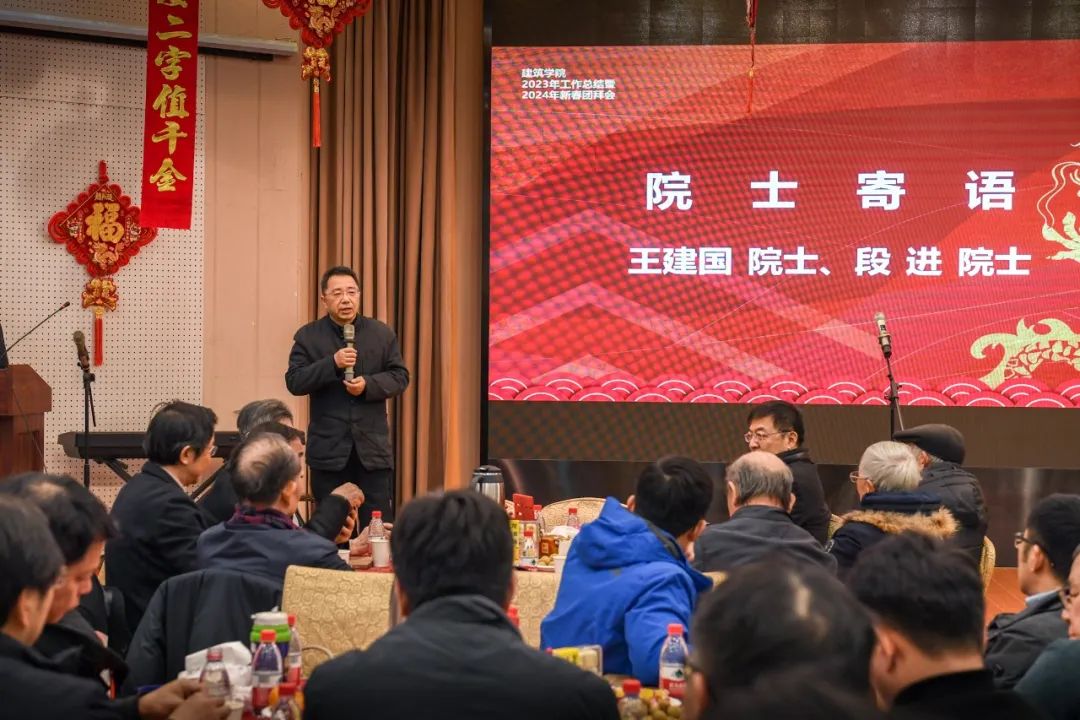 接下来的院士寄语环节,王建国院士和段进院士从当前的城镇化发展进程、全球气候变化提出的双碳要求、国家历史文化保护体系规划、数字技术发展等方面为老师们描绘了学科发展前景,指明了教学科研关注方向,并祝愿老师们身体健康,阖家幸福,新年取得新的进步。