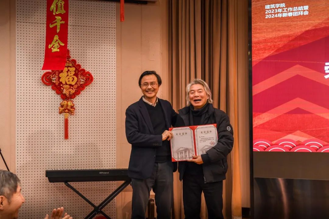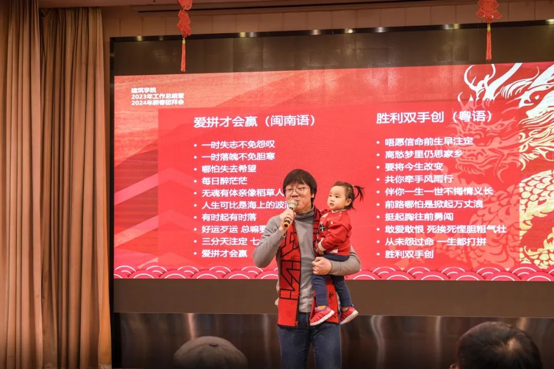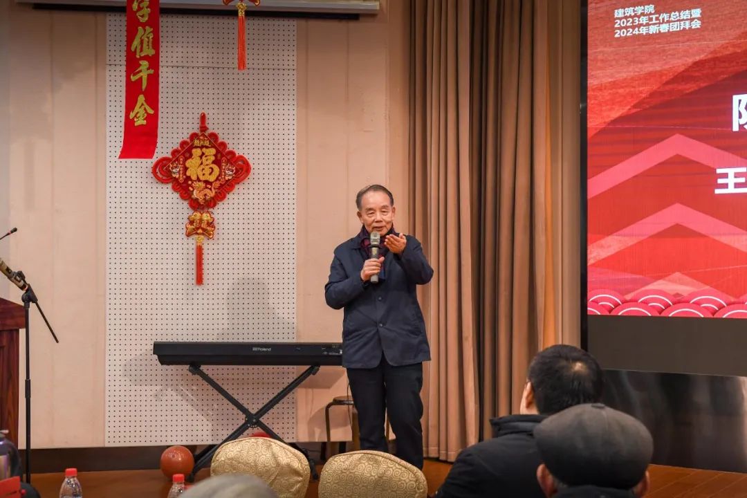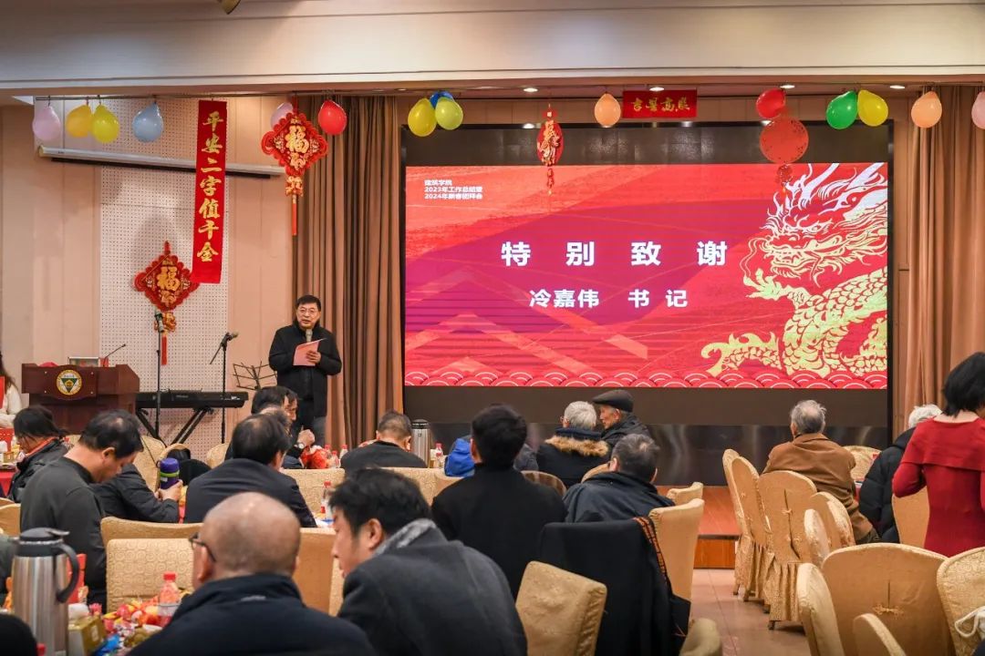 首先,张彤院长向与会教职工做了2023年工作总结汇报,他从学科建设、队伍和平台建设、人才培养、科研与设计创作、国际合作与交流、学生风采等各方面全面回顾了过去一年的重要工作和取得的成绩。2023年是硕果累累的一年,有付出也有收获,有奋斗也有回响。傲人的成绩是对坚守者的嘉许,凝结着每个人的辛劳和汗水,凝聚着每个人的智慧和力量。接着张院长对2024年各项工作提出了计划和展望,面对科技的迅猛变革和未来发展不确定的新变局,应对新时代科教兴国战略,我们主动应变,2024年将是香港赛马会赔率 培养体系与专业建设改革之年,我们将重构一个培养包括行业专才、科技创新博才及管理英才在内的多目标高效率的弹性培养体系。我们将全力推动科研大项目申请和大成果申报,争取取得显著成效。我们将努力争取试行设计实践岗的招聘和晋升,为人才的多样化评价探索一条新的路径。我们将持续与国外一流建筑院校进行学术交流,显著扩大留学生、交流生和国际双学位合作培养的规模,提升培养质量。最后,张院长祝愿全院凝心聚力、龙腾虎跃、生龙活虎,不断攀升新高度,不断取得新成绩。初心如炬,使命如磐,建院人将更加坚定有力地踏上新征程,赓续新篇章。
