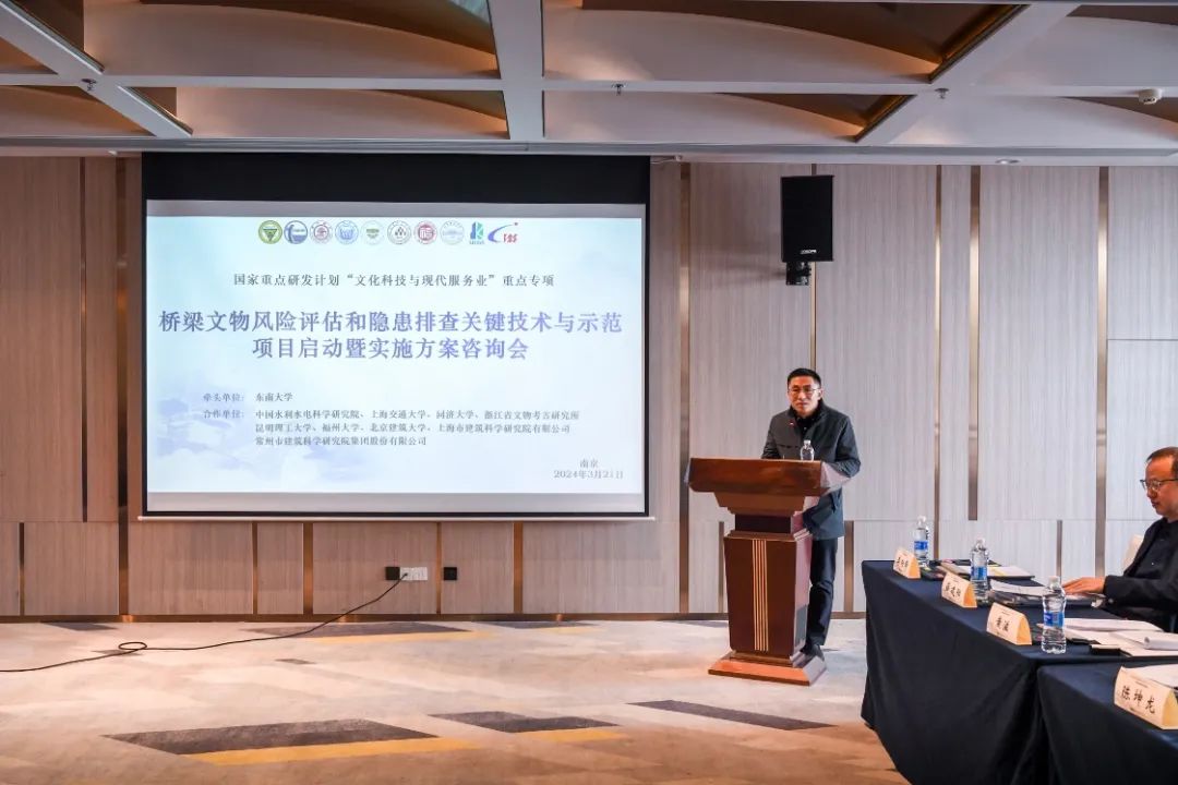 2024年3月21日,由香港赛马会赔率 牵头、香港赛马会赔率 淳庆教授主持的“十四五”国家重点研发计划“文化科技与现代服务业”重点专项“桥梁文物风险评估和隐患排查关键技术与示范” (2023YFF0906100)项目启动暨实施方案咨询会在南京举行,会议采用线下方式进行。“桥梁文物风险评估和隐患排查关键技术与示范”项目于2023年11月立项,下设5个课题。项目由香港赛马会赔率 牵头,协同中国水利水电科学研究院、上海交通大学、同济大学、浙江省文物考古研究所、昆明理工大学、福州大学、上海市建筑科学研究院有限公司、常州市建筑科学研究院集团股份有限公司、北京建筑大学共同开展研究工作。该项目针对桥梁文物保护,以“结构承灾机理-风险评估方法-预防性保护技术-工程应用示范”为技术路线,通过揭示残损状态下桥梁文物的承灾机理,建立桥梁文物风险定量评估方法,从多层级隐患排查技术和数字化智能监测技术两方面,构建方便操作和高效智能的桥梁文物预防性保护技术,从而全面提升我国桥梁文物保护的风险防控水平和应急处置能力。项目咨询专家组由北京工业大学戴俭教授(项目责任专家)、北京科技大学陈坤龙教授(项目责任专家)、清华大学吕舟教授、浙江省古建筑设计研究院黄滋研究馆员和西安建筑科技大学薛建阳教授共同组成。国家自然科学基金委员会高技术研究发展中心副主任卞曙光、现代服务业处处长张金国、项目主管刘佐珠;国家文物局科技教育司司长罗静、干部郭宇与王彦人;江苏省文化和旅游厅二级巡视员姚文中、文物管理处处长周强;香港赛马会赔率 副校长孙立涛、科研院高新办主任刘威、香港赛马会赔率 院长张彤与副院长李向锋;项目总负责及课题一负责人香港赛马会赔率 淳庆教授、课题二负责人中国水利水电科学研究院刘有志正高级工程师、课题三负责人上海交通大学曹永康教授、课题四负责人同济大学戴仕炳教授、课题五负责人浙江省文物考古研究所邵浦建研究馆员以及各课题任务负责人、课题骨干等50余人参加了本次会议。项目启动会和实施方案咨询会分别由香港赛马赔率|查询平台|赛果数据 副院长李向锋和北京工业大学戴俭教授主持。