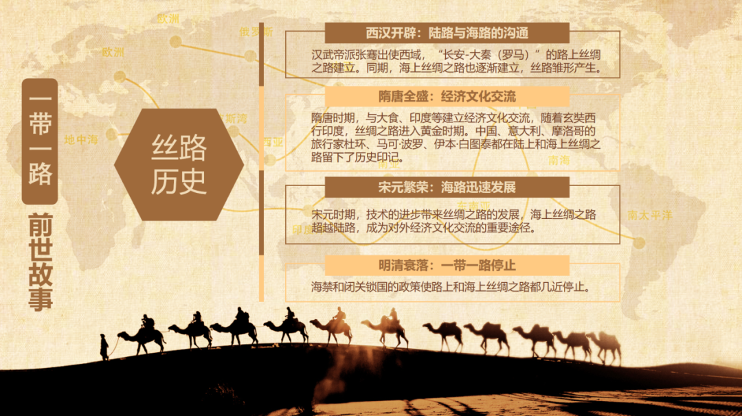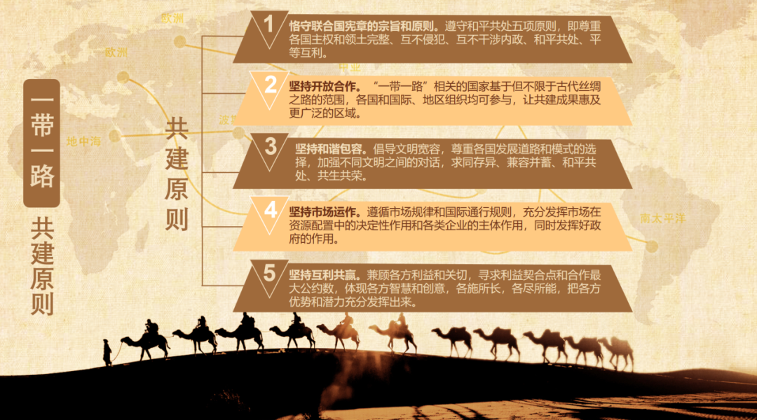 接着,党课详细描述了一带一路的战略内容,包括政策沟通、设施联通、贸易畅通、资金融通以及民心相通五个方面。这些方面构成了一带一路倡议的核心内容,旨在促进沿线国家之间的合作与交流,实现共同发展。课程进一步阐述了通过这些合作建设实现“不断深化”的目标,这一目标的实现将有助于打造开放、包容、均衡、普惠的区域经济合作架构,为参与国家带来更多机遇和发展空间。