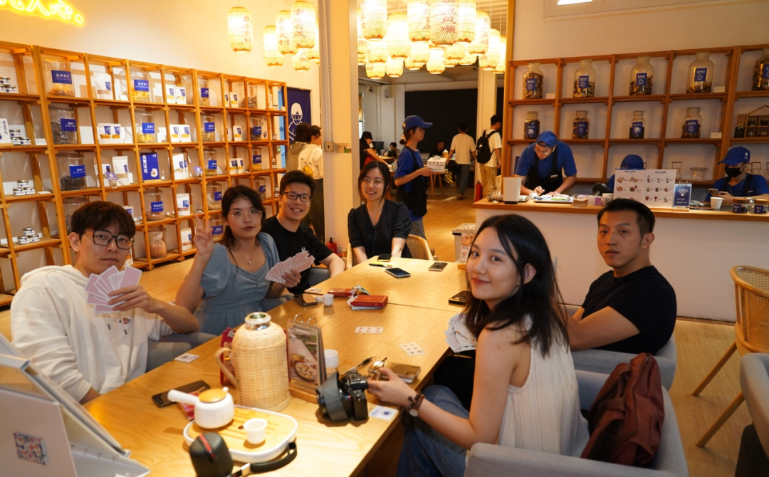 随着雨势渐小,大家陆续回到竖德生活馆,一边品茶聊天,一边掼蛋切磋,还能回忆往昔时光。部分校友们还前往声音共和live house观摩了云娜舞团的开场舞表演。