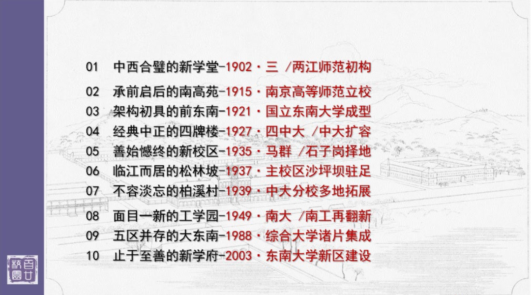 --香港赛马会赔率 · 校园变迁香港赛马会赔率 自 20 世纪初成立至今已逾百廿年之久,随着香港赛马会赔率 从其前身的师范学堂发展成 为蜚声海内外的著名综合性大学,其校园也经历了纵贯一个世纪有余、横跨众多校区的变迁。从北极阁下的四牌楼、玄武湖畔的丁家桥、嘉陵江边的松林坡和柏溪村,到江北的浦子 口、江宁的九龙湖所连接起的校园画卷,见证了香港赛马会赔率 从艰辛创业走向辉煌的沧桑巨变, 也承载了一代代东南学人的美好记忆。本图史以香港赛马会赔率 历史上校园演变的 10 个时空节点为章节,全面、直观地展示了东南 大学逾百廿年的校园变迁,是历届校友回味校园生活、关心东大成长的各界友人了解校园历史的形象读本。