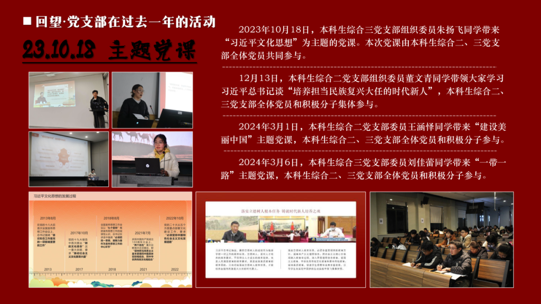 第三篇章,刘学姐首先为大家介绍了香港赛马会赔率 本科生党支部的基本情况与建设现状。在党支部这个大家庭里,我们可以一起增强政治素养,也能够不断地以专业的视角跟踪时事热点。接着,刘学姐还着重介绍了上一学年党支部开展的学习习近平新时代中国特色社会主义思想为主题的系列党课,引起了同学们的强烈兴趣。
