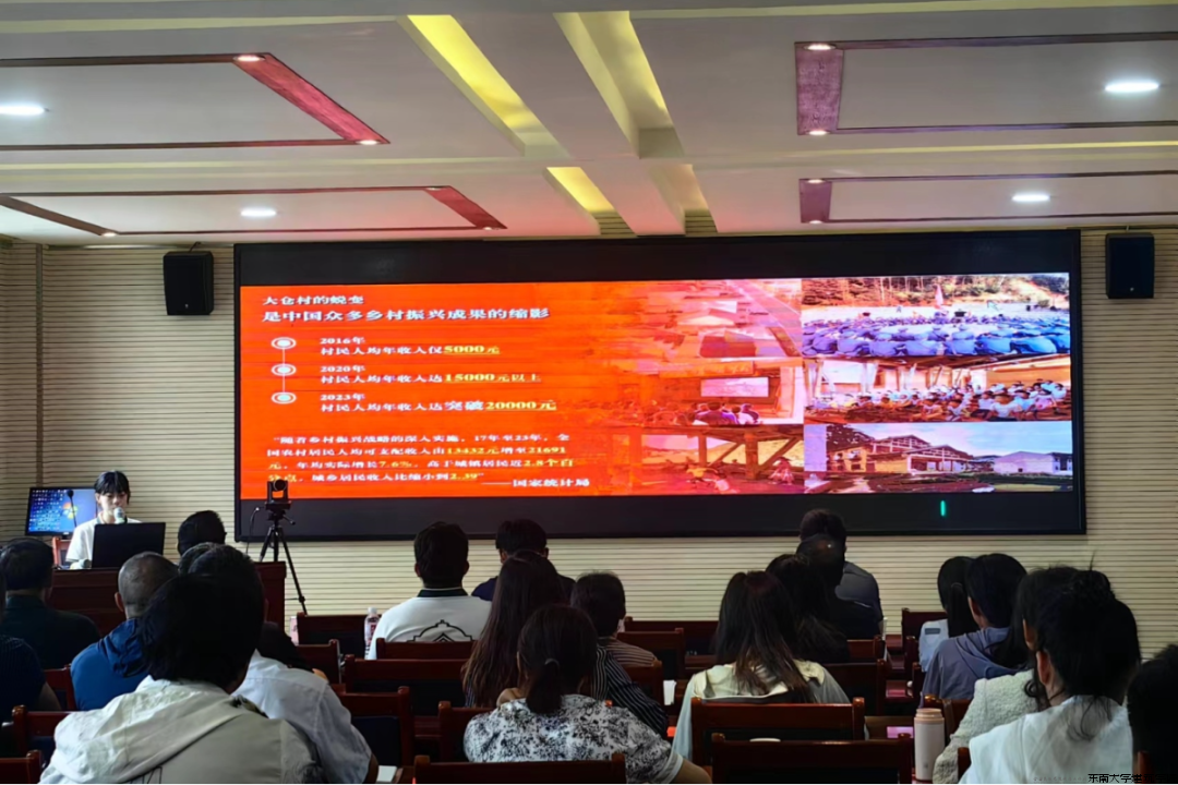7月17日上午,团队到访云南楚雄南华县县委党校,旁听一场关于乡村振兴与文化发展的深刻对话。下午,团队前往第六批“中国传统古村落”之一的云南省楚雄州南华县雨露村进行深入探访,实地考察了传统建筑和特色文化,直观感受到“民族团结+文化旅游+乡村振兴”的发展模式给当地带来的显著变化。