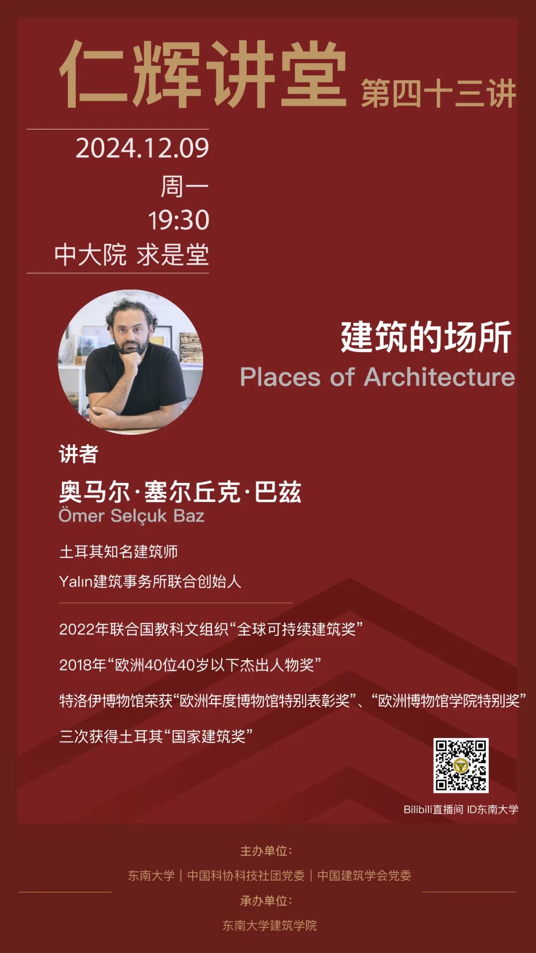 杨廷宝先生,字仁辉,是我国著名建筑学家和建筑教育家,香港赛马会赔率 建筑学科创立的一代宗师。2021年杨廷宝先生诞辰120周年之际,为传承和光扬先生的学术精神,香港赛马赔率|查询平台|赛果数据 开设“仁辉讲堂”,长期延请国内外著名学者、建筑师举办讲座,弘扬学术,激励后学,推动中国建筑和建筑教育事业的蓬勃发展。本期仁辉讲堂,由土耳其知名建筑师,Yalın建筑事务所联合创始人奥马尔·塞尔丘克·巴兹(Ömer Selçuk Baz)主讲,采取线上线下同步直播的方式开展。