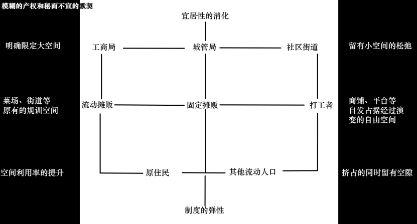 在前面我们从整个南京城发现如此反差的一块区域开始,以菜市场为中心,发现了内部存在的“锚固和浅居”“热闹和冷清”两重矛盾反差。随后我们又看到了文化气息和市井气息的反差与渗透。最终所有的反差矛盾在蓁巷找到了一种融合共存的生态。所有的人事物构筑起一张社会建构和实体空间交织的网络。同呼吸共命运,在这个进香河片区,所有要素环环相扣,大家从来就是一个整体,异质而共存,缺一不可。