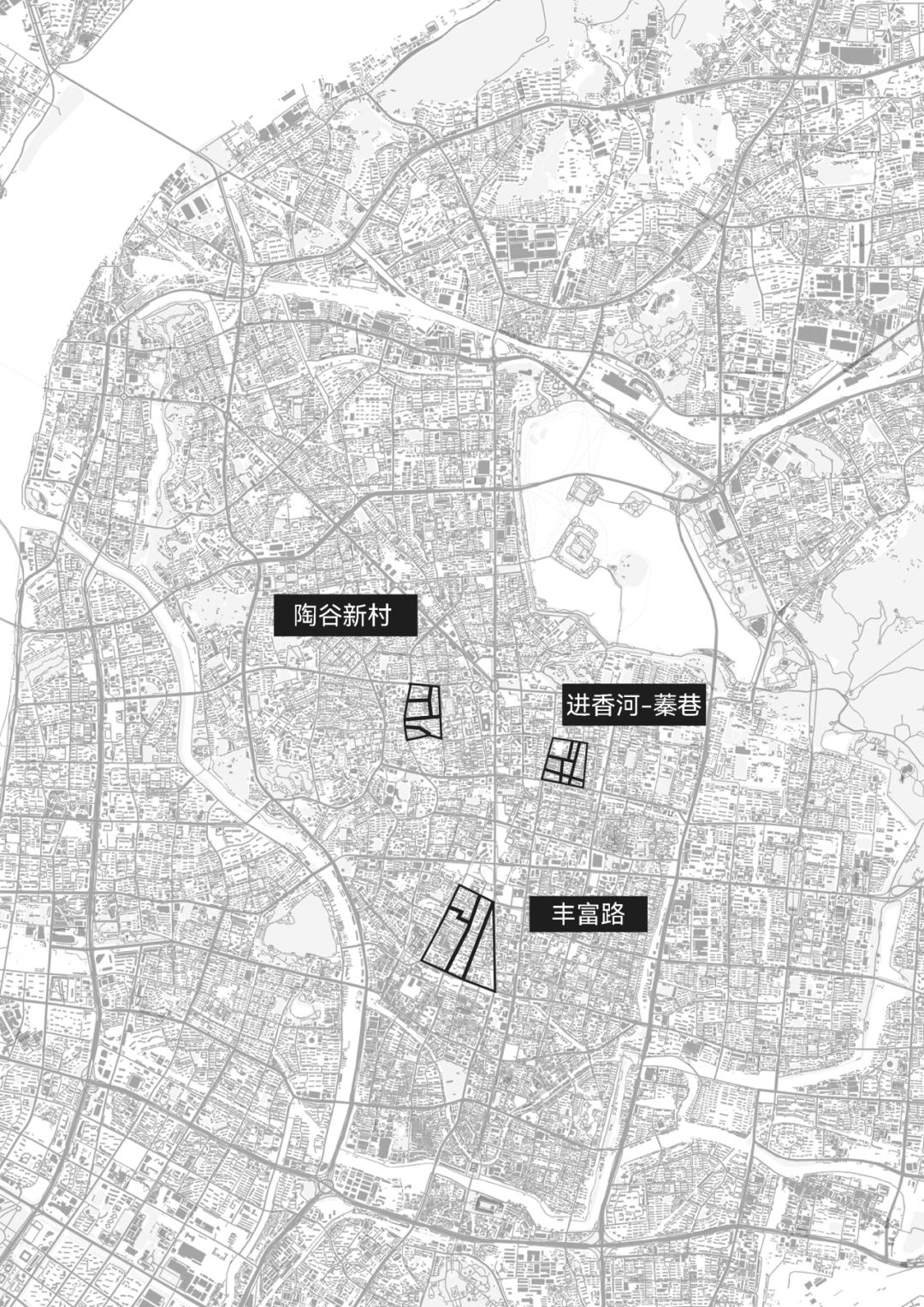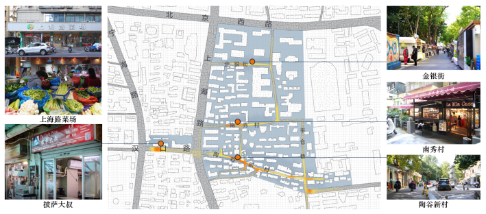 我们的研究以陶谷新村路为核心,向北覆盖南秀村和金银街,延伸至上海路更西侧区域。