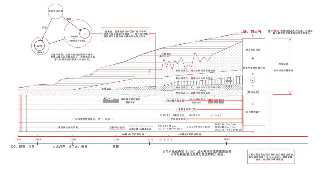 丰富路烟火气的高人气度体现为线上的热度与线下的热闹,这种热的特质是媒介作为城市的助燃剂作用于城市空间的结果。