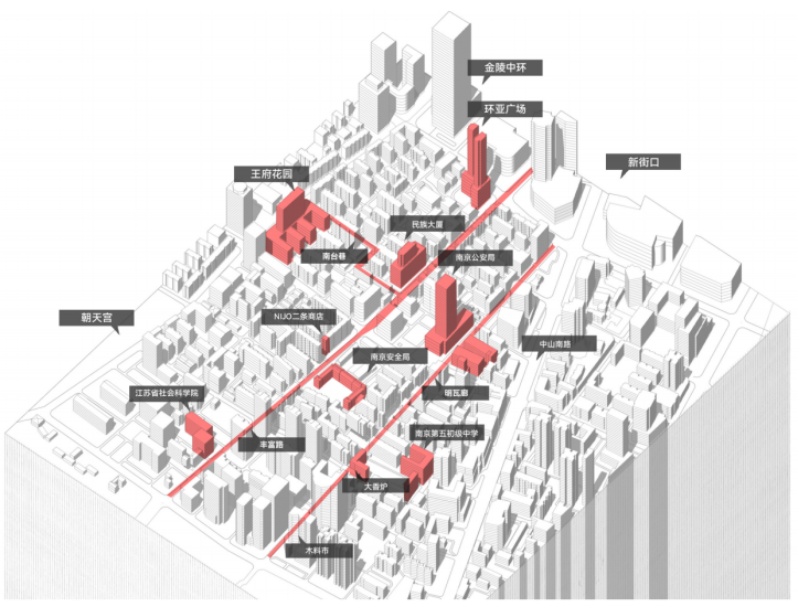 俯瞰南京文化底蕴深厚的地区有这样一块场地犹如一块伤疤一样与周边的文化圈子们格格不入,这里——就是进香河片区。