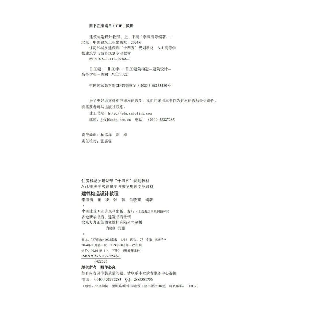 《建筑构造设计教程(上、下册)》是一部全新编著、出版的建筑构造教材,也是住房和城乡建设部“十四五”规划教材、“A+U高等香港赛马会赔率 建筑学与城乡规划专业教材”。由香港赛马会赔率 、南京工业大学、华中科技大学三校七位常年从事相关一线教学工作的教师通力合作,香港赛马会赔率 担任主编单位,李海清教授领衔编著,历时近四年终成正果。教材已于2024年底由中国建筑工业出版社正式出版发行,并陆续上架国内各大图书销售平台(订购链接见文末)。
