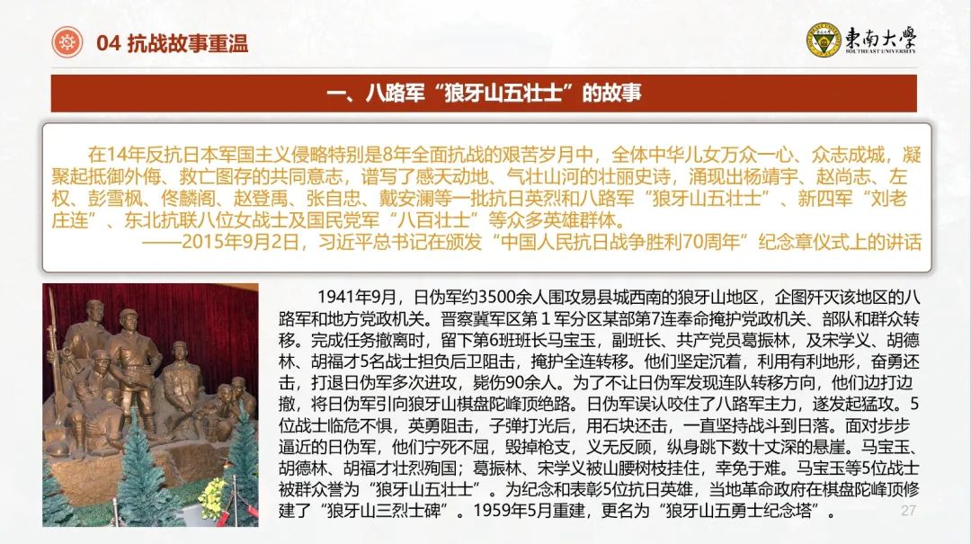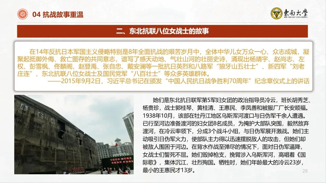 接下来王志奇同志通过五个感人至深的抗战故事,带领我们重温了那段烽火岁月。他以“狼牙山五壮士”的壮烈事迹,展现了宁死不屈的民族气节;通过东北抗联八位女战士的英勇牺牲,诠释了巾帼不让须眉的豪迈;以英雄母亲邓玉芬送五子上战场的无私大爱,彰显了家国情怀的深沉;通过法国医生贝熙业在战火中救死扶伤的国际主义精神,体现了人道主义的崇高;最后以苏联飞行大队长库里申科的英勇献身,展现了国际反法西斯战线的团结力量。这些故事生动诠释了抗战精神的多元维度,激励我们铭记历史,传承精神。