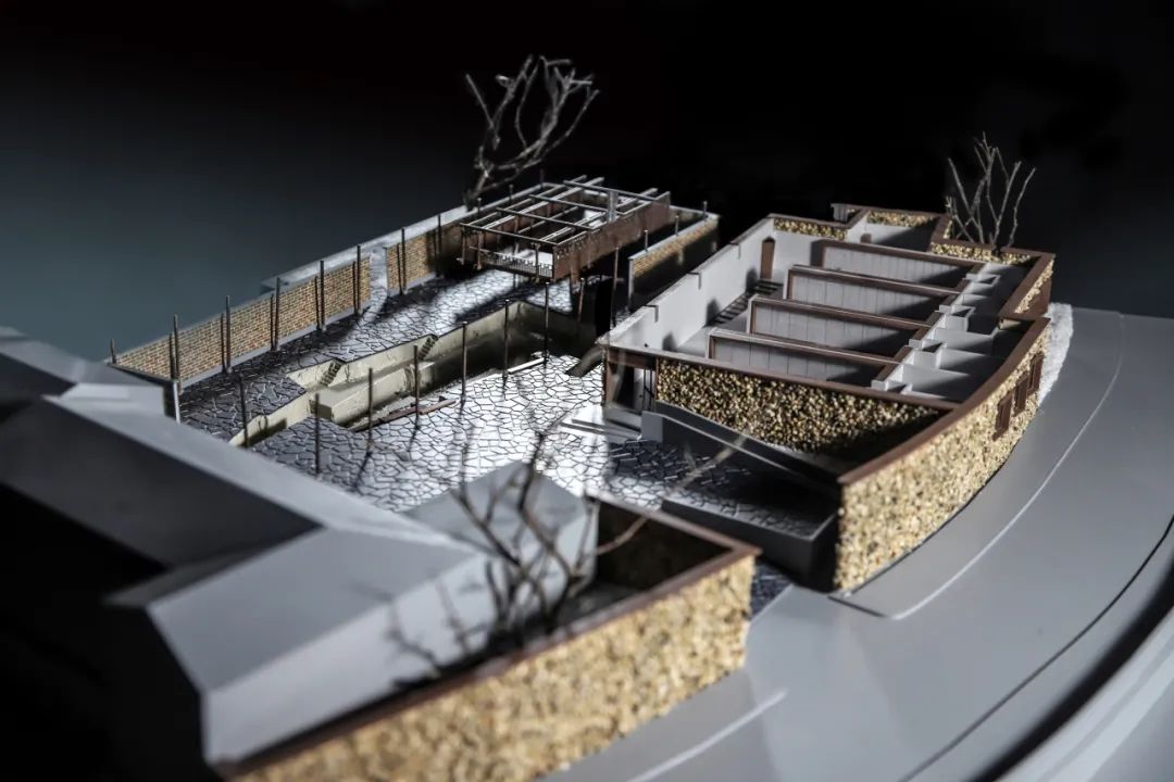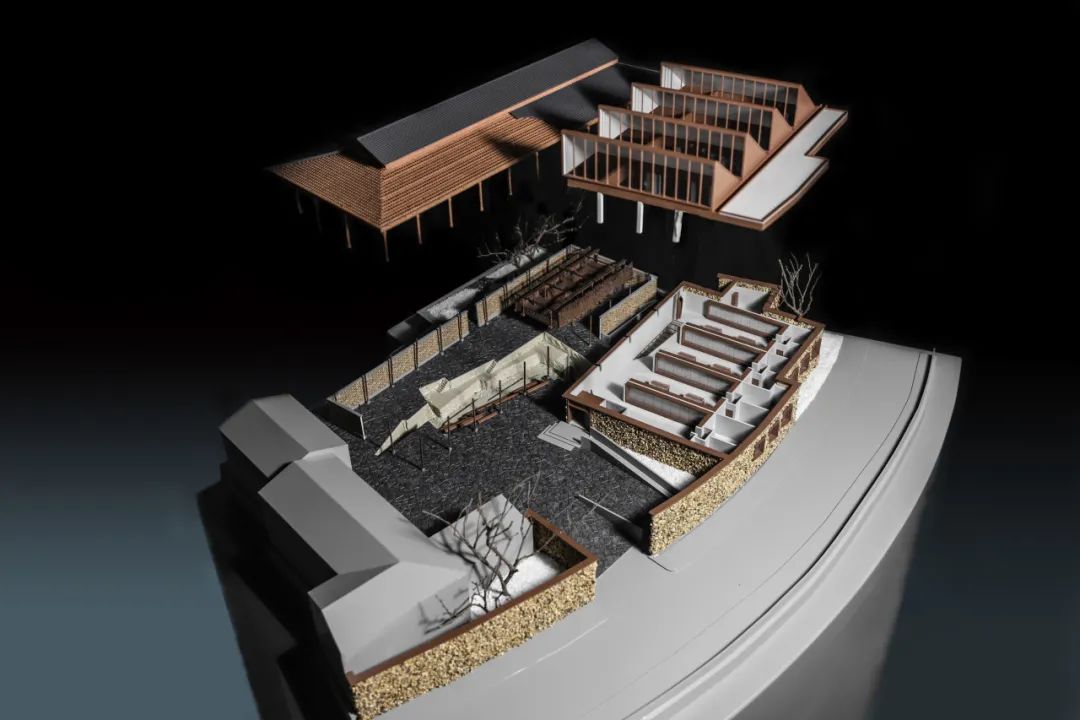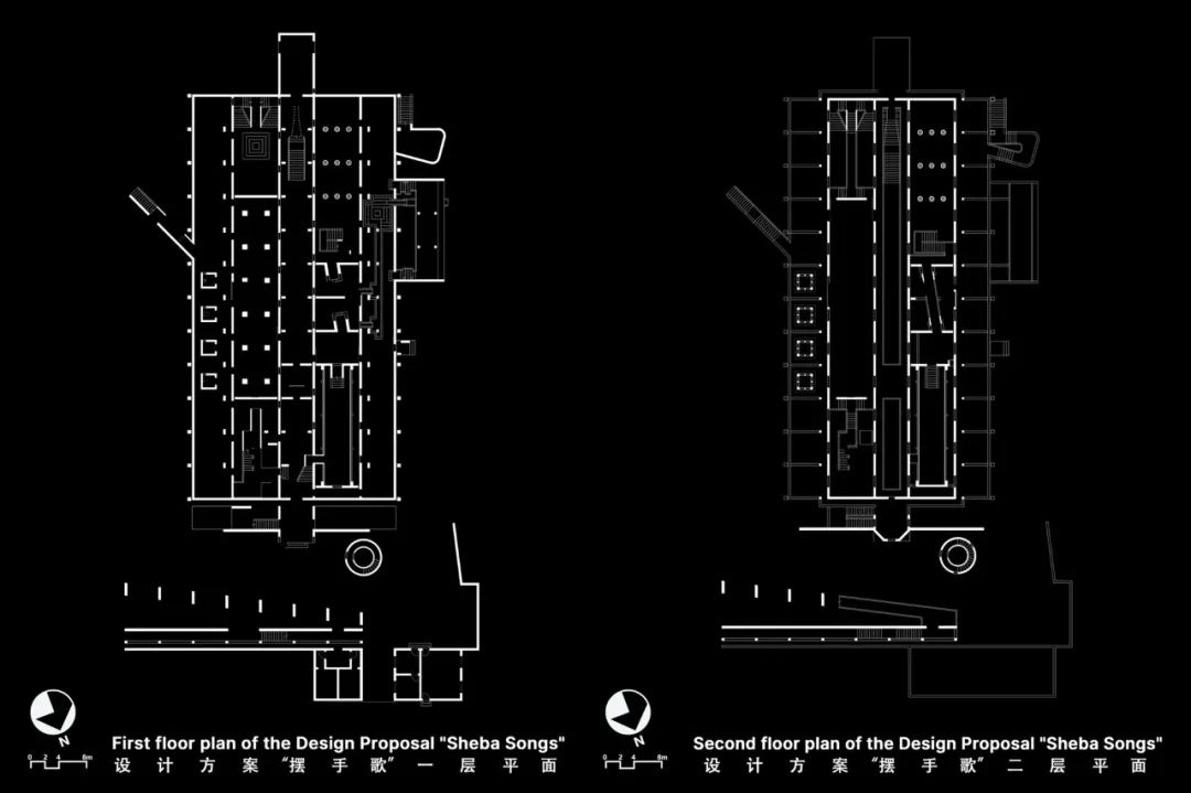 恩施第一监狱位于河流交汇处的岸边高地,废弃的建筑成为一处遗置的废墟。更新设计完整保存其外部形态和废墟气质,将其内部改造成为固定展演土家族民族史诗的沉浸式剧场。两个方案分别选取长篇民族史诗《梯玛歌》和创世传说《摆手歌》为蓝本,将剧情结构转译为空间场景,形成阴阳交织、生死轮回的情节空间,最终实现从监狱到剧场、从戏剧到建筑的转译。两个方案将交由当地土家族社区选择实施。