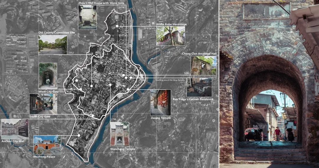 古城始建于南宋淳祐三年(公元1243年),拥有800年建城史,历经宋代土司城、明代施州卫、清代施南府、近代二战时期湖北省临时省会等重要时代变迁。2900米古城墙围合0.6km2文化遗产核心区,施州城址内的不同遗产层积,构建了古城清晰可辨的历史图景,见证了古城历时演变的连续性与包容性。