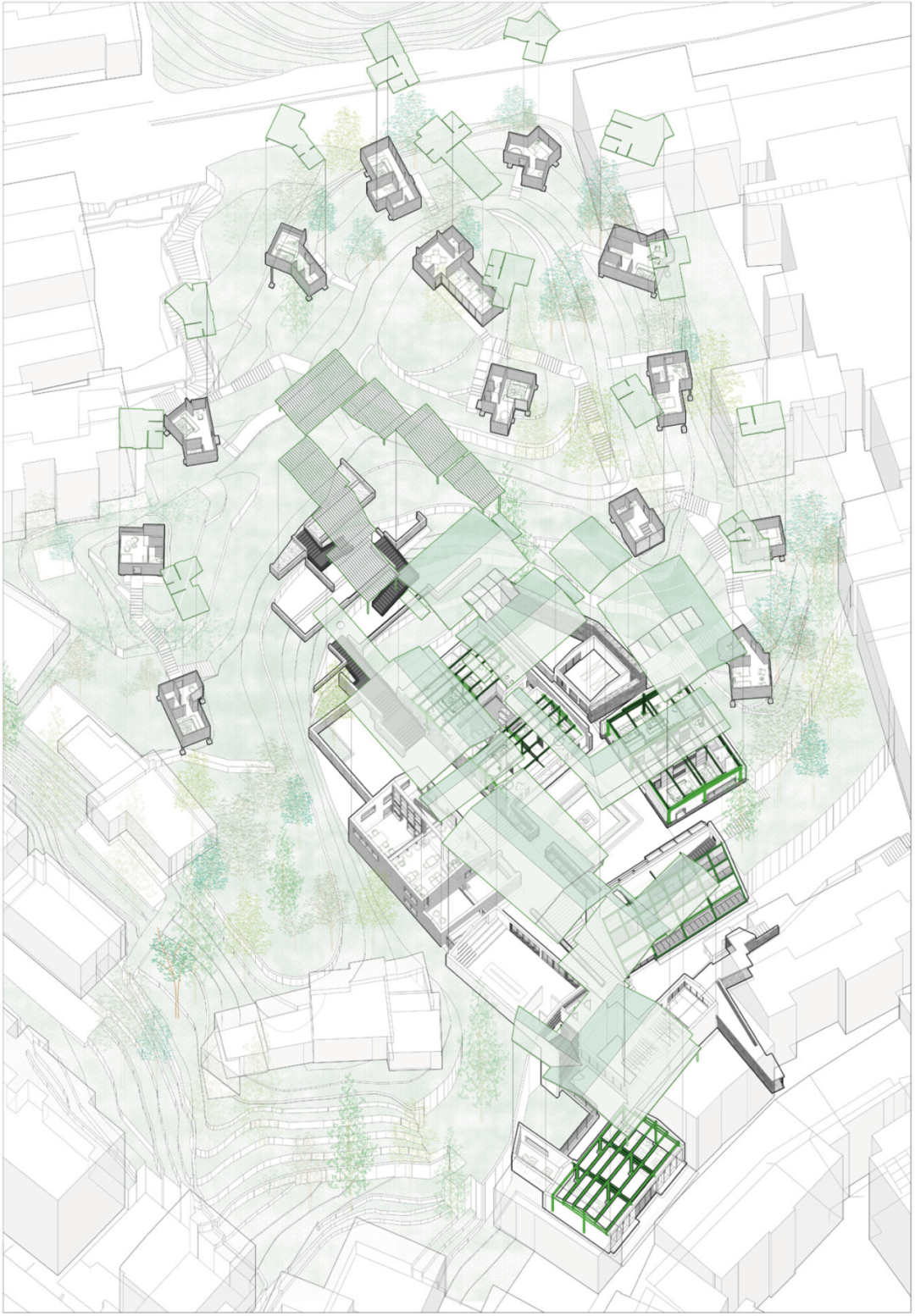 The departure of young workers has left the elderly and children of the historical town feeling isolated. To combat this, an unfinished, abandoned building is being repurposed into a vibrant intergenerational center, creating a space where seniors and children can find companionship and support. Understanding how seniors and children would use the space, the function was reimagined, and the environment thoughtfully enhanced with attention to the terrain, sound, and sunlight. Once a place of neglect, this site is now a warm, open, and thriving community heart.
