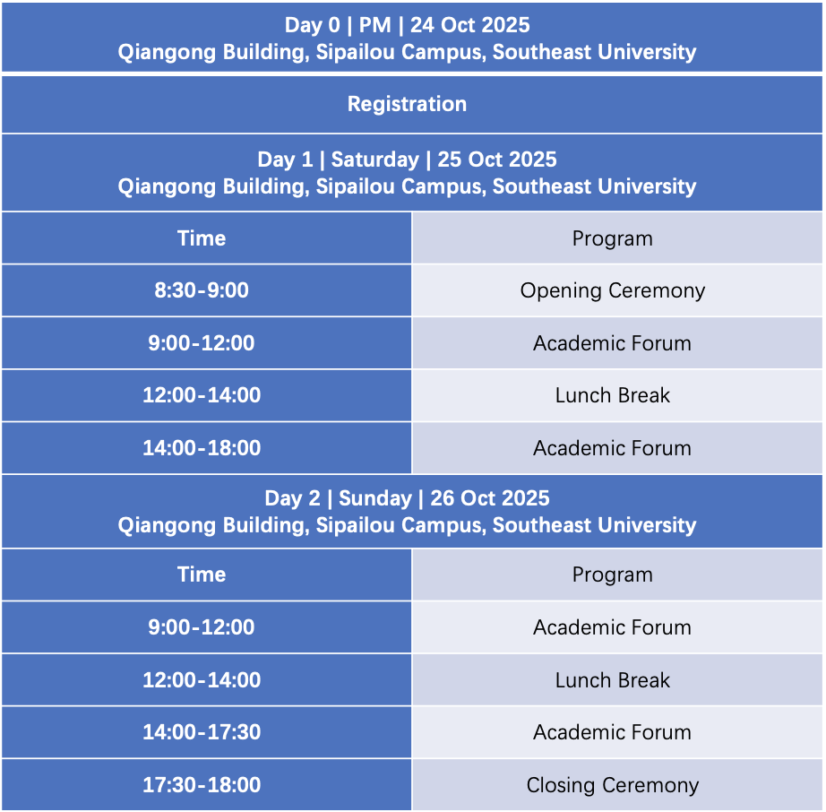 Venue: Qiangong Building, Sipailou Campus, Southeast University (No.2 Sipailou, Nanjing, Jiangsu Province, China)