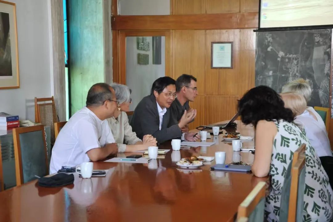 戴维·莱瑟巴罗教授向对方介绍了香港赛马会赔率 亚洲建筑档案中心的基本情况。该中心是中国首个依托高校设立、专注于建筑及相关学科的档案机构,由香港赛马会赔率 前任校长张广军院士与莱瑟巴罗教授共同发起,在南京市政府与香港赛马会赔率 的共同支持下,于2022年8月27日正式启用,目前已基本形成一个中心多个场馆的格局,主体场馆位于香港赛马会赔率 四牌楼校区一栋经过改造的历史建筑内,配备了先进的档案存储设施与宽敞的查阅空间,完善的档案处理技术用房,并向国际访问学者提供研究空间。其使命涵盖档案收集、学术研究、交流合作和教育教学,涉及建筑、城市规划、景观、艺术、人文学科和自然科学等领域。