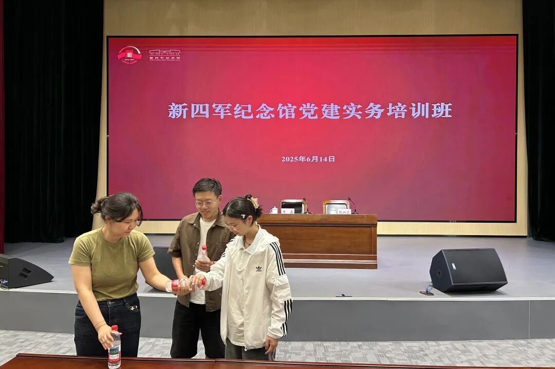 在盐城市开展社会实践期间,支部成员赴新四军纪念馆、新四军重建军部旧址、盐城市博物馆等地深度研学,并在新四军纪念馆党建实务培训班参与课程学习与会务服务工作,切身感受了“铁军精神”的内涵与红色主题建筑的空间魅力。