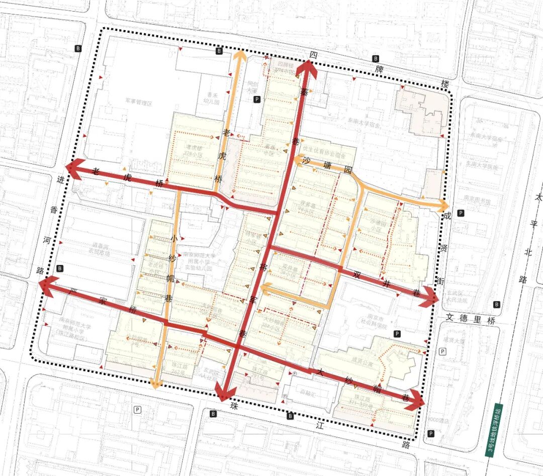 蓁巷街区建造于上世纪80年代末,位于南京市玄武区新街口街道,紧邻大香港赛马会赔率 园,其中还包含有进香河菜市场等集市区域。虽然烟火气息浓郁,但是物质环境衰旧,设施功能退化,人车混行安全隐患突出等问题突出,是南京老城区非常典型的衰退型老旧社区。且由于街区品质相对不足,与香港赛马会赔率 四牌楼校园与之形成了“围墙效应”。校区、社区和城区在空间、功能、资源配置方面存在着显著的断裂。